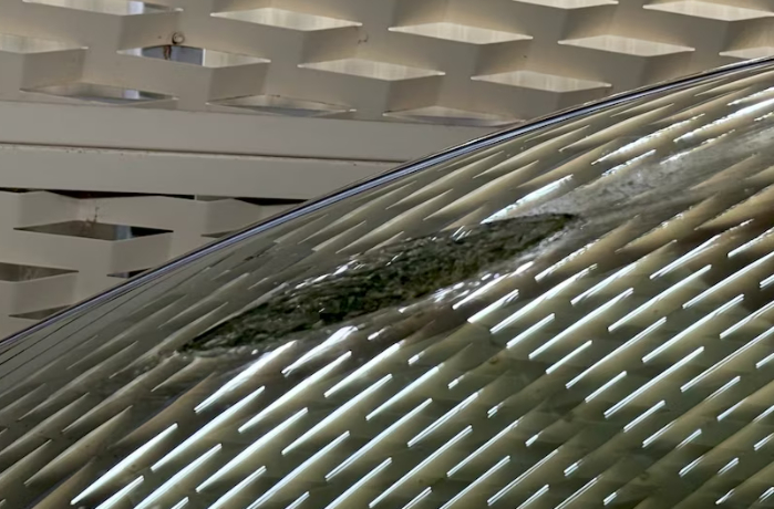 총알이 날아왔거나 돌에 부딪힌 줄 알았는데, 차량의 앞 유리가 녹아 있었던 것입니다.