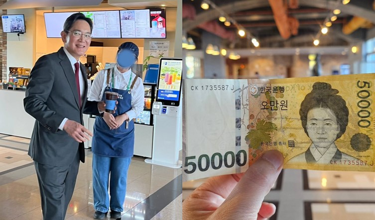 주머니에서 5만 원 꺼내 카페 직원에 전한 이재용 회장[스레드 캡처][스레드 캡처]이 게시물은 하루 만에 조회수 43만 회를 넘기며 빠르게 퍼졌습니다.