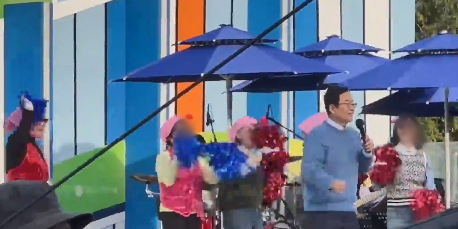 전국노래자랑 무대에 선 문인 광주 북구청장과 여성 고위 공무원들.[화면제공 시청자][화면제공 시청자]문인 광주 북구청장이 전국노래자랑 무대에서 여성 공무원들의 백댄서 논란에 대해 직원들에게 사과했습니다.