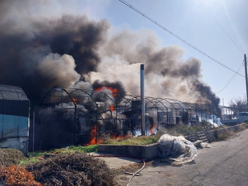 화재로 비닐하우스 3개 동과 내부에 있던 블루베리 관목 210그루 등이 불타 소방서 추산 9천만원의 재산 피해가 발생했습니다.
