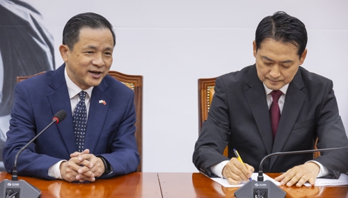 <저작권자(c) 연합뉴스, 무단 전재-재배포, AI 학습 및 활용 금지>국민의힘 장동혁 대표에게 인사말 하는 다이빙 주한 중국대사