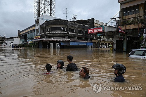 빗물에 잠긴 태국 남부 핫야이시[로이터=연합뉴스 제공][로이터=연합뉴스 제공]최근 태국 남부 지역에서 300년 만에 쏟아진 기록적 폭우로 홍수가 발생해 30명 넘게 숨졌습니다.