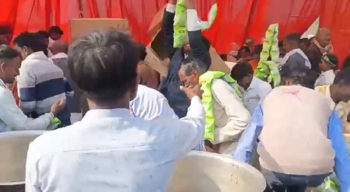 합동결혼식에 제공된 간식 쟁탈전이 벌어진 모습[X 캡처][X 캡처]인도 정부가 주최한 대규모 합동결혼식에서 난데없는 간식 쟁탈전이 벌어졌습니다.