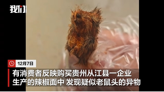 또 구이저우에서는 온라인으로 구매한 고춧가루에서 쥐 머리로 보이는 이물질이 발견됐다는 신고가 접수됐습니다.