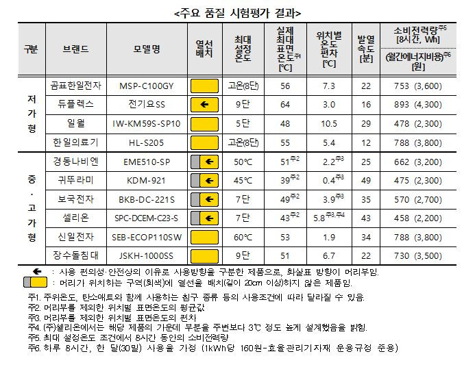 소비자원은 "개인마다 최적이라고 느끼는 보온 온도가 상이하므로 사용 용도와 기호에 따라 제품을 선택하라"고 조언했습니다.