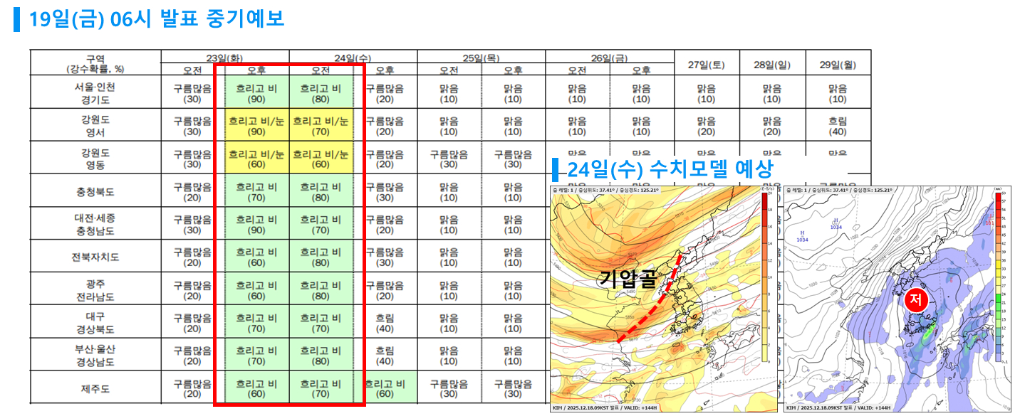 다음 주 날씨 전망 [기상청 제공]다음 주 화요일(23일)과 수요일(24일)은 또 한 차례 우리나라에 기압골이 지나며, 전국에 비가 내릴 전망입니다.