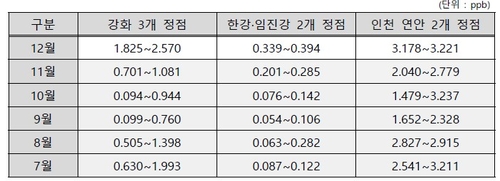 12월 서해 7개 정점의 우라늄 농도 측정치[통일부 제공][통일부 제공]연합뉴스TV 기사문의 및 제보 : 카톡/라인 jebo23
