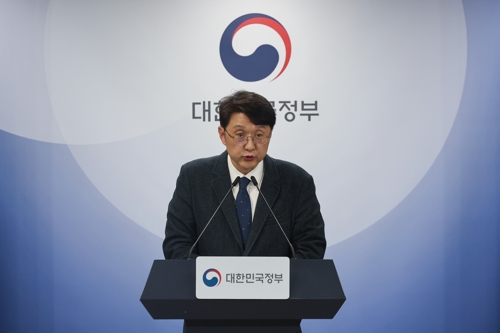 (서울=연합뉴스) 서대연 기자 = 최우혁 과학기술정보통신부 네트워크정책실장이 24일 서울 종로구 정부서울청사에서 휴대전화 개통 시 안면인증 관련 브리핑을 하고 있다.