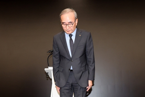 <저작권자(c) 연합뉴스, 무단 전재-재배포, AI 학습 및 활용 금지>고개 숙여 사과하는 김영섭 KT 사장