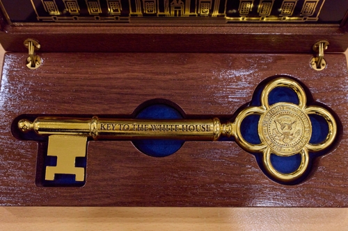 이 대통령이 공개한 황금열쇠는 트럼프 대통령이 지난 10월 방한 당시 받은 신라금관 모형에 대한 답례로, 강경화 주미대사와의 환담 자리에서 전달한 백악관 제작 5개 중 마지막 열쇠입니다.