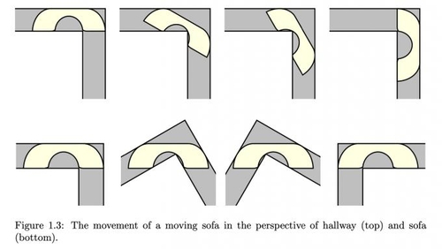 소파 움직이기 문제는 폭이 1이고 직각으로 꺾인 좁은 복도를 지나갈 수 있는 가장 면적이 넓은 도형을 묻는 문제입니다.