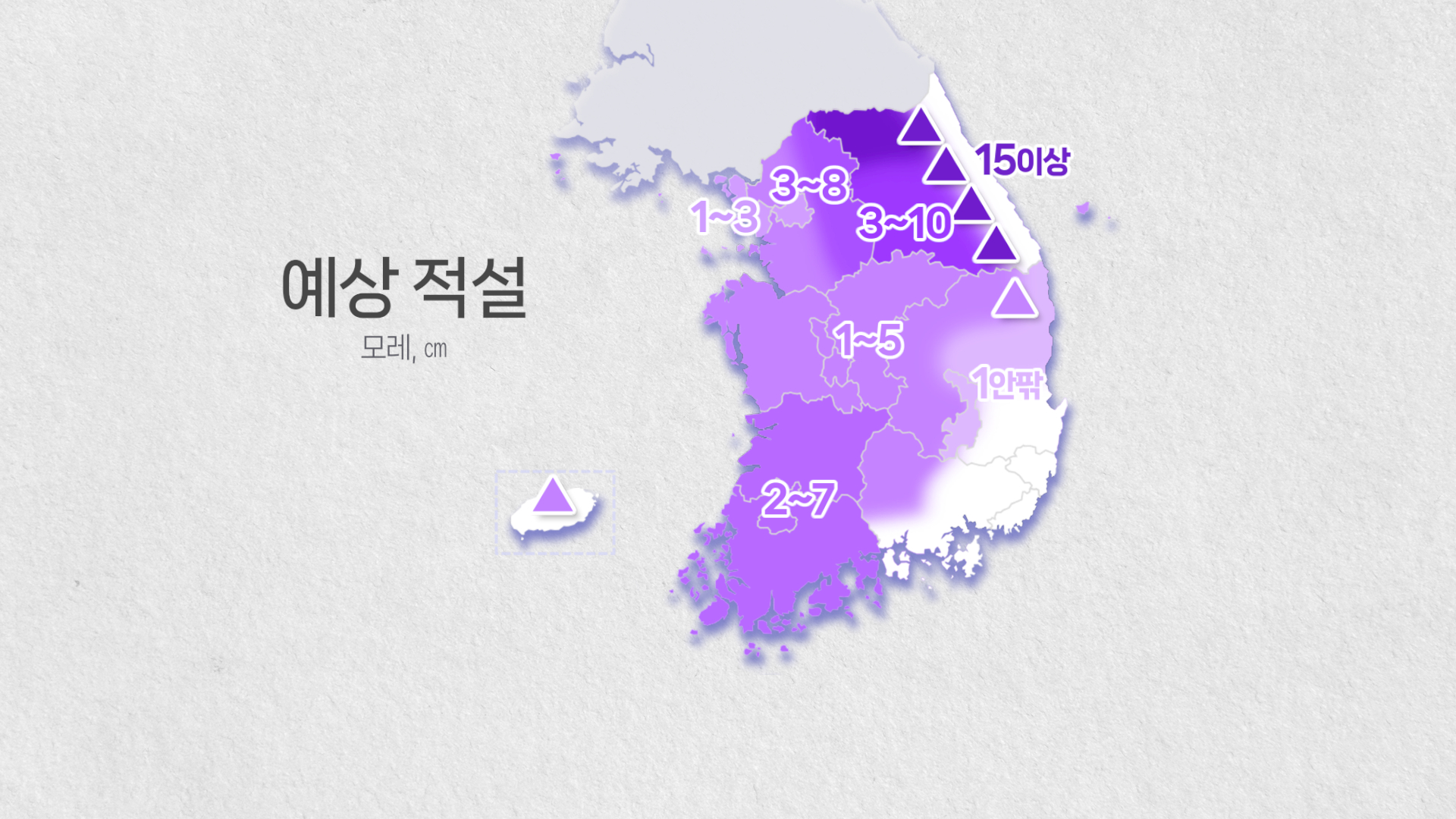 서울도 1~3㎝, 충청과 영남 1~5㎝, 호남은 2~7㎝의 적설이 예보됐습니다.
