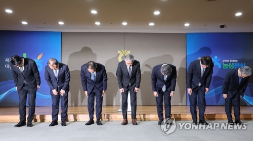 강 회장은 "농협은 지난 65년 간 농업·농촌과 농업인을 위해 최선을 다해 왔지만, 국민의 기대에 미치지 못한 점에 대해 다시 한 번 깊이 사과드린다"면서 "농업·농촌과 농업인의 삶을 지키는 본연의 역할에 더욱 충실하며, 국민의 신뢰를 회복하고 사랑받는 협동조합으로 거듭날 것을 약속드린다"고 말했습니다.
