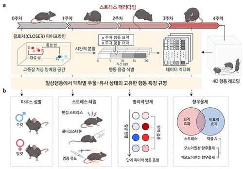 연구팀은 이 기술을 활용해 우울증과 가장 유사한 '만성 예측 불가능 스트레스(CUS)' 생쥐 모델을 만들고, 행동만으로 일상 속 우울 상태를 구별할 수 있는지를 검증했습니다.