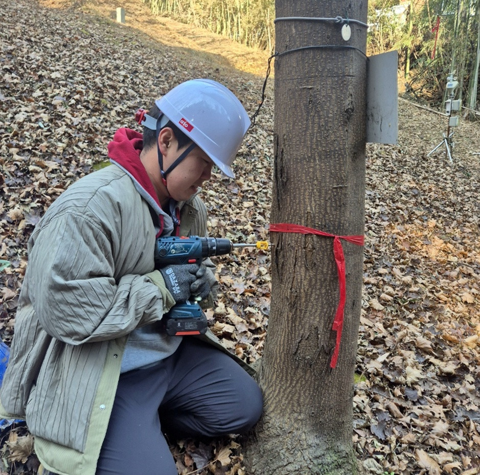 현재는 경남 진주를 포함한 전국 6개 거점 지역에서 대기 및 토양 온습도 변화가 수액 출수량에 미치는 상관관계를 모니터링하고 있습니다.