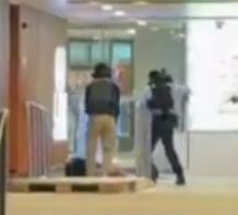 흉기 난동범 제압 장면[SNS 캡처][SNS 캡처]홍콩의 한 쇼핑센터에서 한 남성이 흉기를 들고 난동을 부리다 출동 경찰의 총격을 받고 숨졌습니다.
