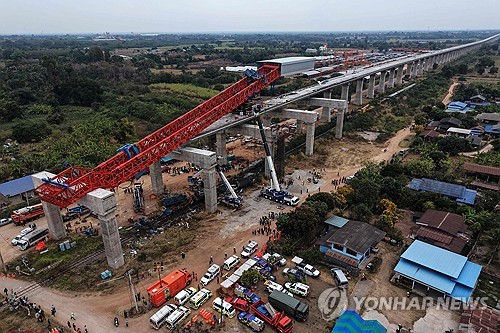 앞서 지난 14일 태국 중부 나콘라차시마주 시키오 지역의 고속철도 공사장에서 무너진 크레인이 운행 중이던 열차에 추락, 32명이 사망했습니다.