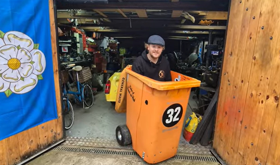 [기네스 월드 레코드 제공][기네스 월드 레코드 제공]영국 발명가가 최대 시속 129km까지 속도를 낼 수 있는 바퀴 달린 쓰레기통을 만들어 세계 신기록을 세웠습니다.