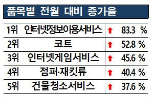'코트' 관련 상담 건수는 전월보다 52.8%, '인터넷게임서비스' 관련은 45.6%, '점퍼·재킷류' 관련은 40.4% 늘었습니다.