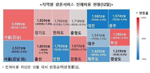 지난해 12월 지역별 결혼서비스 전체 비용[한국소비자원 제공][한국소비자원 제공]