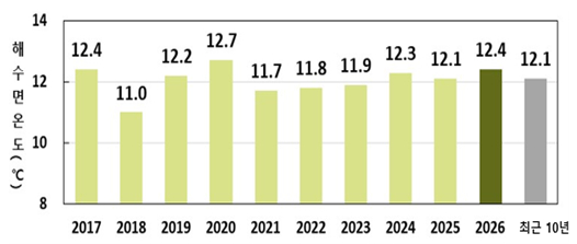 바다에서도 1월 우리나라 주변 해역의 평균 해수면 온도가 12.4도를 기록해 최근 10년(2017~2026년) 중 두 번째로 높았습니다.