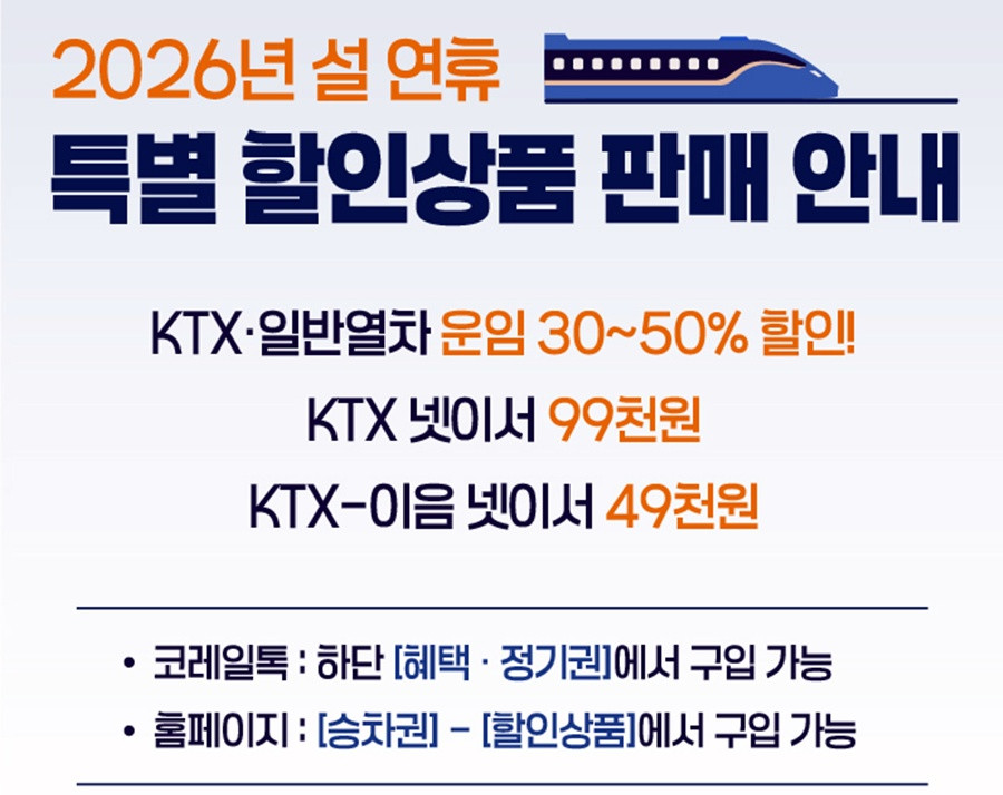 2026년 설 연휴 특별 할인상품 판매 안내[코레일 제공. 재판매 및 DB 금지][코레일 제공. 재판매 및 DB 금지]