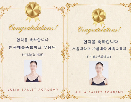 신지효 양은 발레 전공으로 선화예중과 선화예고를 거쳐 성장해왔습니다.