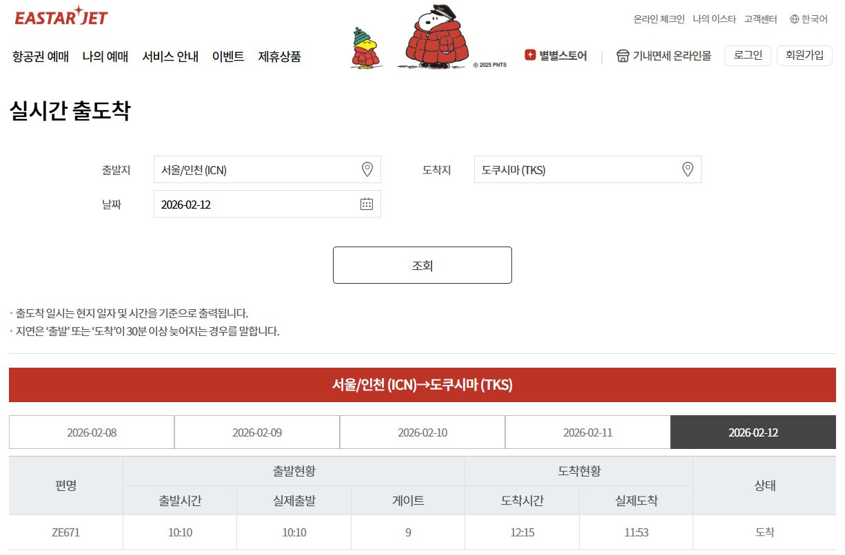 이스타항공은 홈페이지의 '실시간 출도착' 페이지를 통해 국내외 전 공항에서 출발하는 자사 항공편의 탑승구 번호를 실시간으로 확인할 수 있도록 시스템을 구축했습니다.