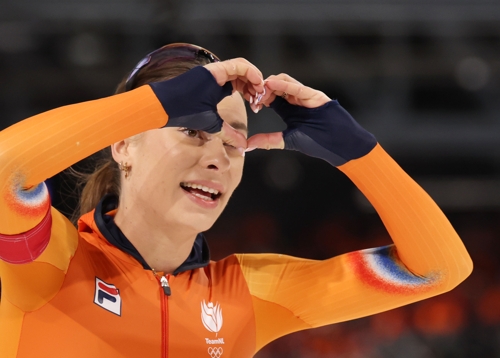 (밀라노=연합뉴스) 신준희 기자 = 15일(현지시간) 이탈리아 밀라노 스피드스케이팅 스타디움에서 열린 2026 밀라노-코르티나담페초 동계올림픽 스피드스케이팅 여자 500m에 출전한 네덜란드 펨케 콕이 금메달을 따낸 뒤 기뻐하고 있다. 2026.2.16