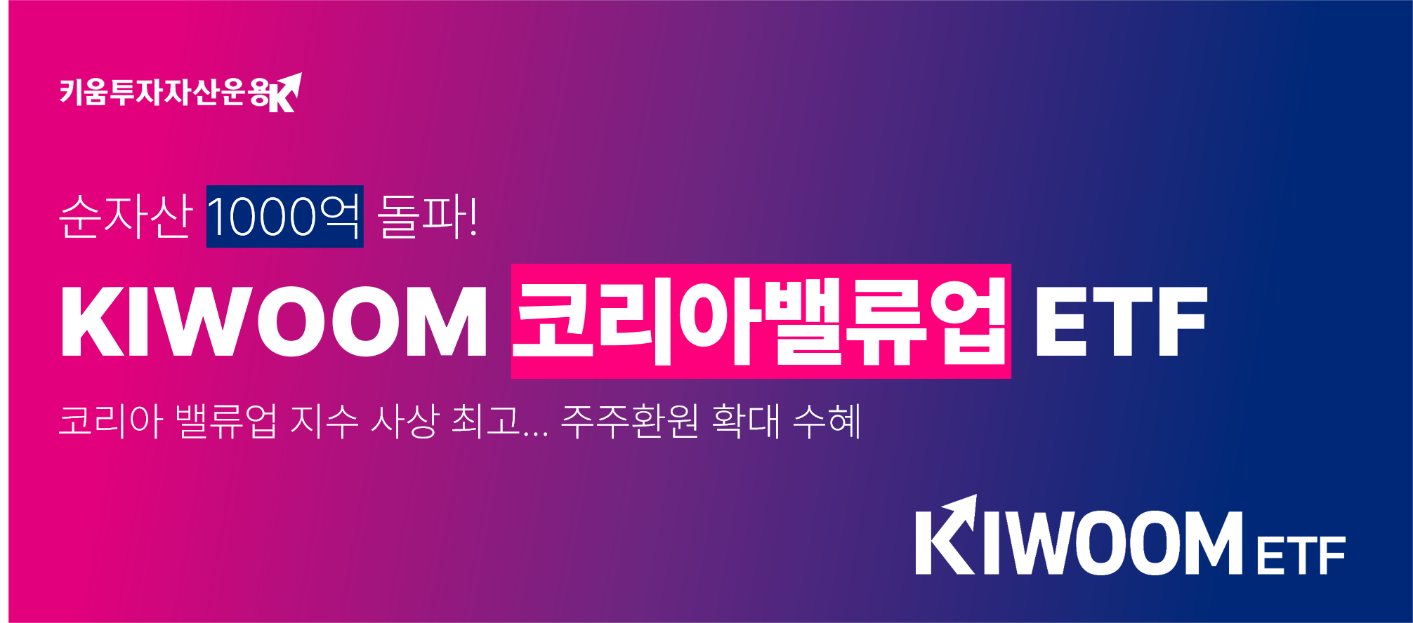 키움투자자산운용은 ‘KIWOOM 코리아밸류업 ETF'의 순자산이 지난 12일 기준 1천억원을 돌파했다고 밝혔습니다.