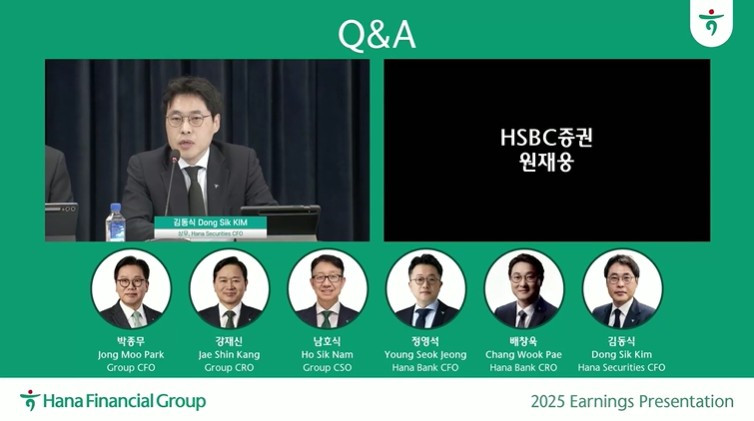 김동식 하나증권 CFO가 지난해 실적 부진 원인에 대해 설명하고 있다.[하나금융그룹 2025년 경영실적발표 화면 캡처][하나금융그룹 2025년 경영실적발표 화면 캡처]