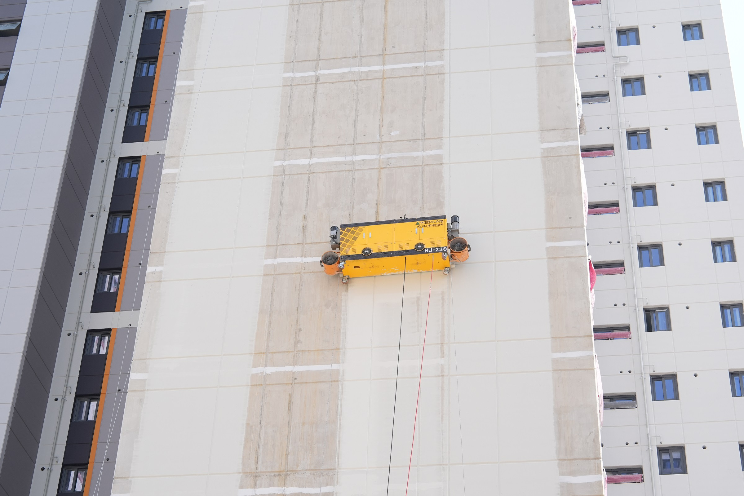 우선 무인·원격제어 방식을 적용해 기존 달비계(건물 외벽 작업 시 작업자가 탑승해 와이어로 매달려 이동하는 임시 작업 설비) 기반의 외벽 도장 작업을 대체할 수 있는 것이 가장 큰 특징입니다.