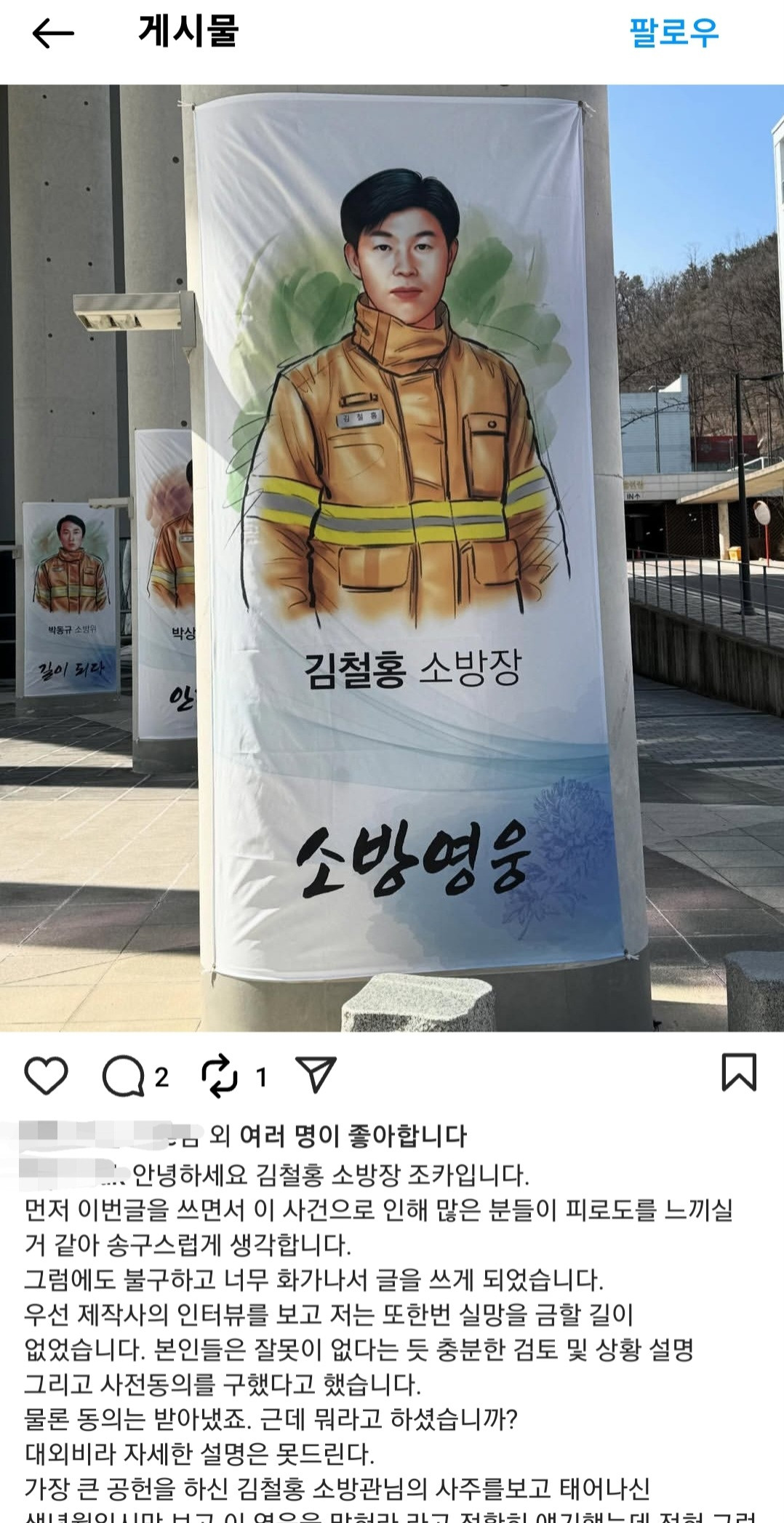 이후 제작진은 입장문을 내고 "유가족 및 친지들 가운데 사전 동의 과정에 대해, 방송 이후에야 전달받은 분이 있으시다는 것을 뒤늦게 알게 됐다"며 "상처 입으신 유가족과 동료 소방관께 진심으로 사과드린다"고 고개를 숙였습니다.