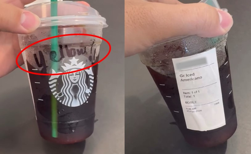 공개된 영상에는 스타벅스 일회용 컵 전면 상단에 ‘yellow!!’라고 적힌 모습이 담겼습니다.