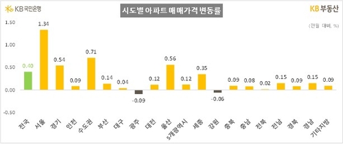 전국적으로 아파트값은 0.40% 상승했습니다.