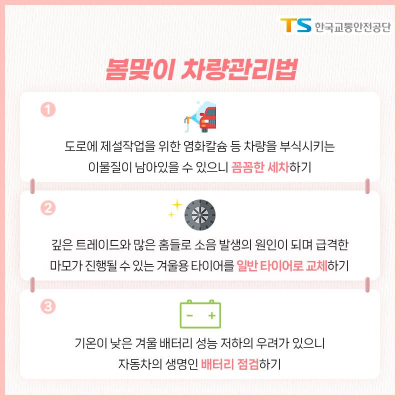 정용식 TS 이사장은 "봄 행락철 가족 모두가 안전한 여행이 될 수 있도록 운행 전 자동차 점검은 필수"라며 "교통사고 걱정 없는 안전한 일상을 위해 과속운전 금지, 안전벨트 착용 등 안전수칙을 준수해달라"고 당부했습니다.