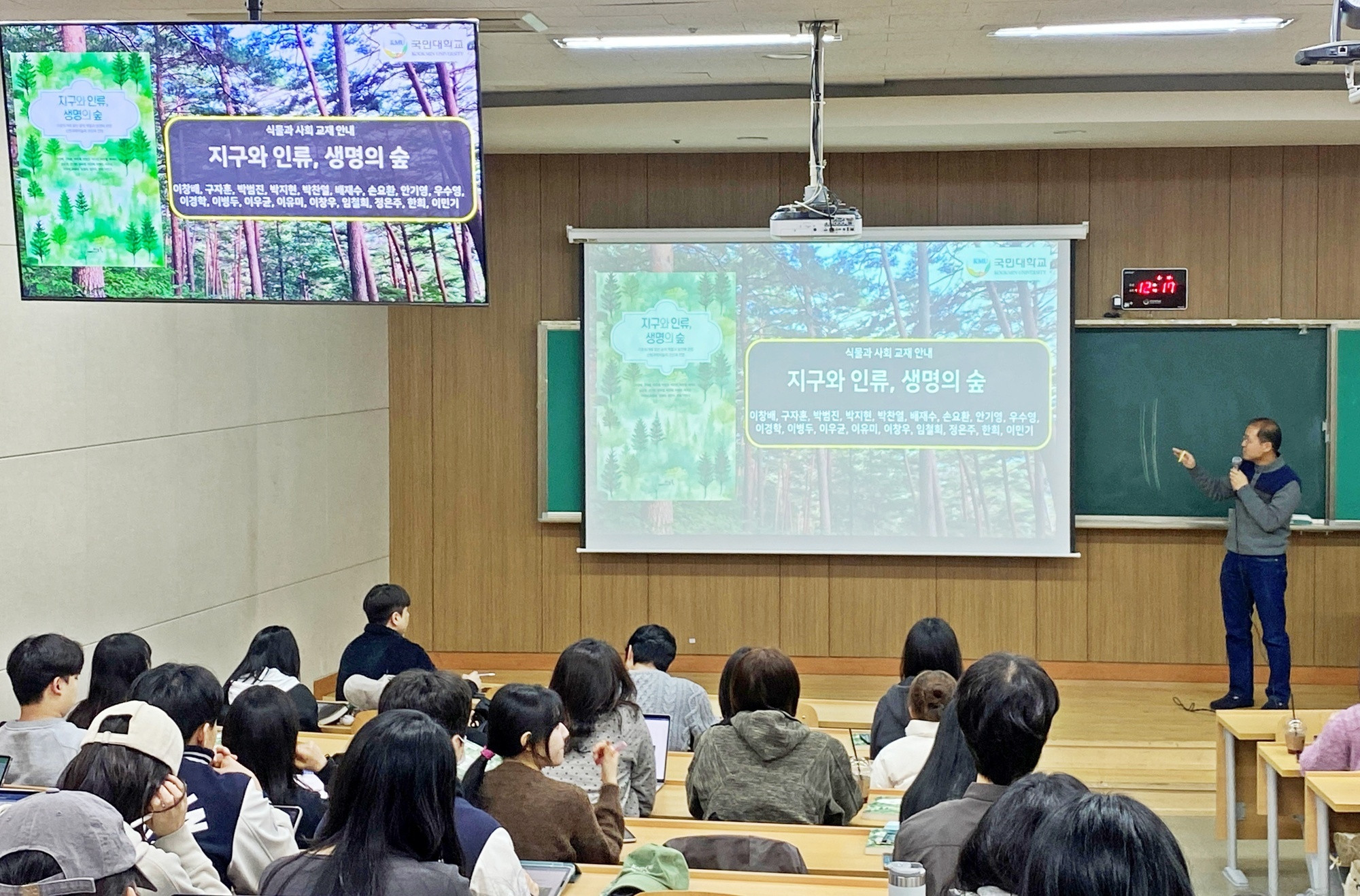 국민대는 학생들이 숲과 나무의 소중함을 바르게 이해하고, 그 속에 담긴 생명의 의미와 가치를 성찰할 수 있도록 하는 데 목적이 있다 교재 도입 배경을 설명했습니다.