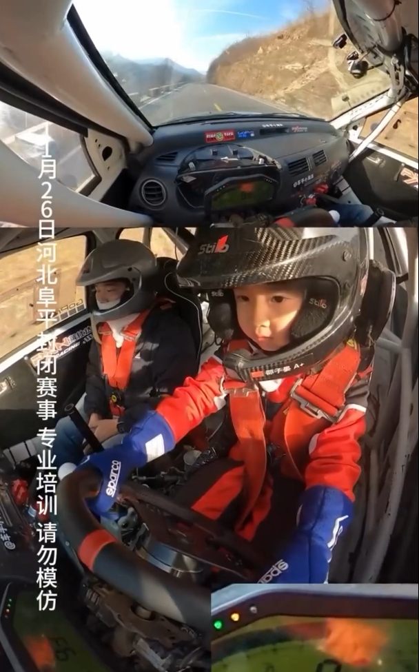 그리고 다섯 살 때는 중국 자동차·오토바이 스포츠 연맹에서 인증한 자격증을 취득해, 정식 프로 랠리 레이서가 됐습니다.