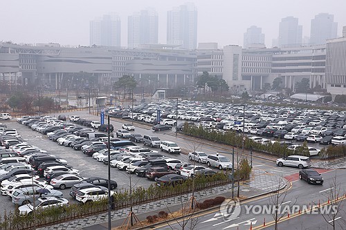 정부, 중동 사태 장기화 대비 '차량 부제' 검토(세종=연합뉴스) 김주성 기자 = 18일 세종시 정부세종청사 옥외 주차장에 차량들이 빼곡히 주차돼 있다.정부는 중동 상황의 장기화 가능성에 대비해 에너지 수요 절감책으로 '차량 부제 운행' 추진방안 마련에 나섰다. 2026.3.18 utzza@yna.co.kr(세종=연합뉴스) 김주성 기자 = 18일 세종시 정부세종청사 옥외 주차장에 차량들이 빼곡히 주차돼 있다.