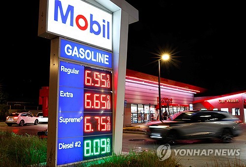 30일(현지시간) 미국 캘리포니아주 주유소 가격 표시판[AFP=연합뉴스][AFP=연합뉴스]미국 내 휘발유 가격은 2022년 이후 처음으로 갤런(약 3.78L)당 4달러(약 6,100원)를 넘어섰습니다.