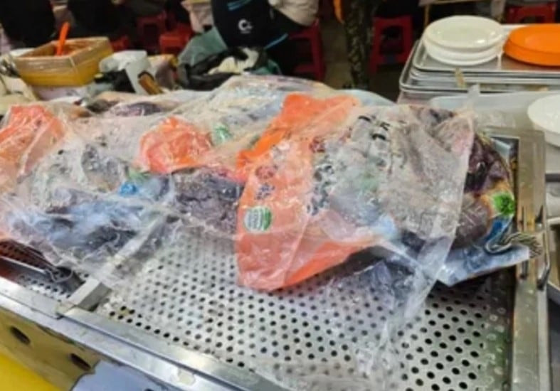 또 다른 사진에는 순대 찜기에, 역시 포장 봉지를 뜯지 않은 순대가 놓여 있습니다.
