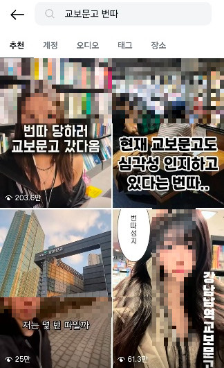 실제로 '떠오르는 헌팅 명소', '번따 성지' 등 '교보문고 번따' 관련 동영상들을 SNS에서 쉽게 찾아볼 수 있습니다.