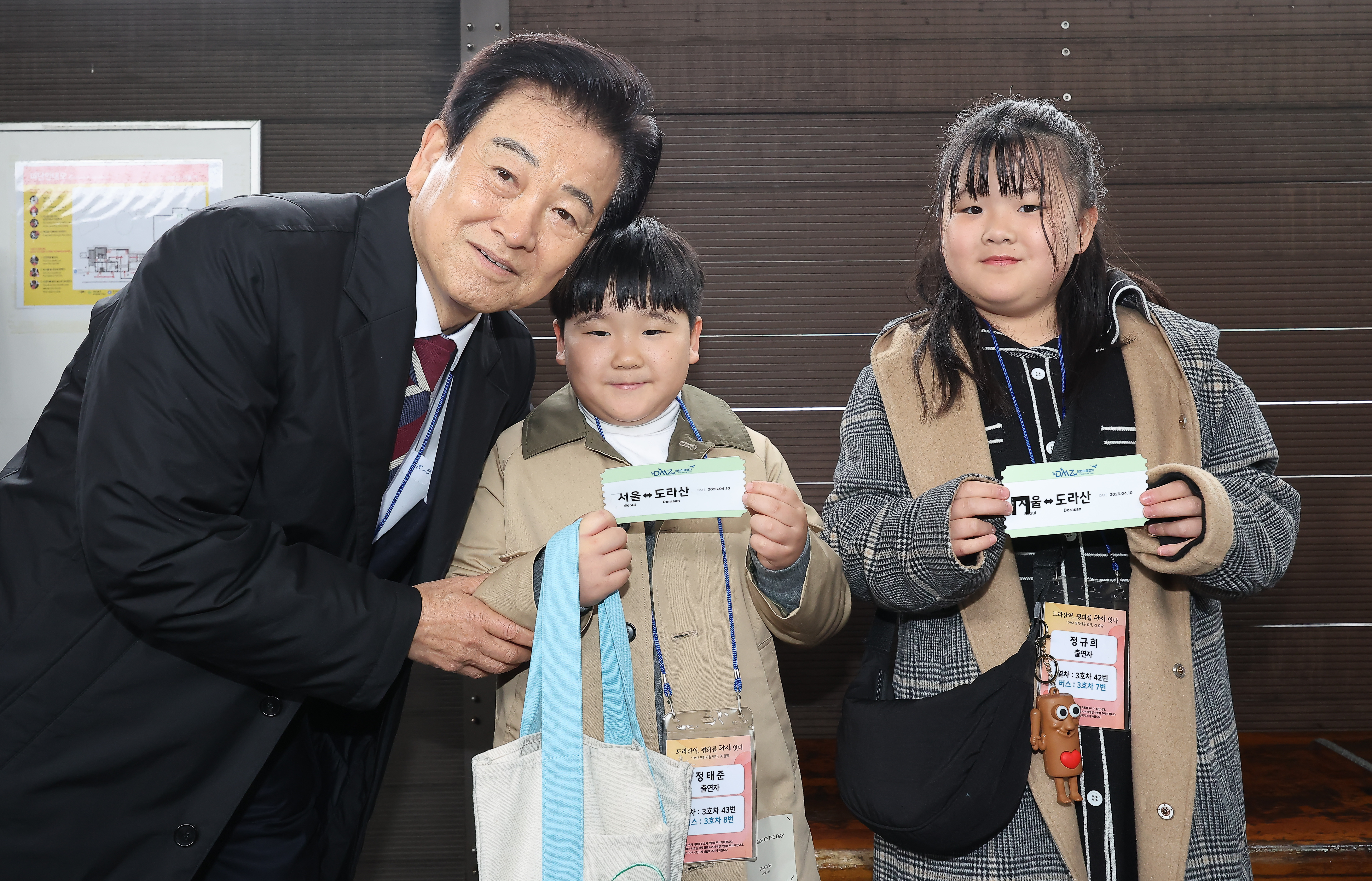 정동영 통일부 장관과 도라산역 정기 관광열차에 탑승한 어린이들연합뉴스TV 기사문의 및 제보 : 카톡/라인 jebo23