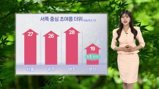 [날씨클릭] 오늘도 서쪽 초여름 더위…제주·남해안 비[앵커]오늘도 한낮에 중부를 중심으로 초여름 더위가 나타나겠습니다.제주와 남해안에는 비 소식도 들어있는데요.자세한 날씨는 기상캐스터와 함께 알아보겠습니다.진연지 캐스터, 어제는 볕이 여름에 가깝더라고요.[캐스터]어제 이어서 오늘도