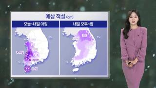[날씨클릭] 오늘도 강추위 이어져… 전국 곳곳 눈[앵커]중부와 경북 북부 내륙에 한파특보가 발효 중인 가운데, 오늘도 겨울 추위가 이어지겠습니다.추위 속에 전국 곳곳에 눈이 내리겠습니다.자세한 날씨는 기상캐스터와 함께 알아보겠습니다.김민지 캐스터, 오늘도 많이 춥다고요?[캐스터