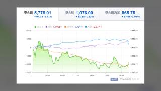 호르무즈 재봉쇄에 놀란 증시…코스피, 1.61% 하락 마감호르무즈 해협 재봉쇄 소식에 투자심리가 얼어붙으면서 코스피가 하락 마감했습니다.오늘(9일) 코스피는 전 거래일 대비 1.61% 내린 5,778.01에 장을 마쳤습니다.개인과 기관이 동반 매수에 나섰고, 외국인 홀로 매수 우위를 보