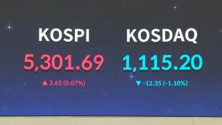 코스피 5,300선 강보합 마감…코스닥 1% 하락코스피가 5,300선에서 강보합 마감했습니다.오늘(10일) 코스피는 전 거래일(9일)보다 0.98% 오른 5,350.21에 거래를 시작해 장중 한때 5,360선까지 오르기도 했습니다.이후 상승폭을 줄여 0.07% 오른 5,301.