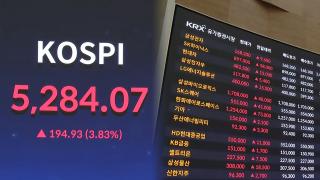 코스피, 4% 급등해 5,200 후반 출발…코스닥도 2.7%↑코스피가 5,200선 후반에서 상승 출발했습니다.오늘(9일) 코스피는 전 거래일(8일)보다 4.13% 오른 5,299.10에 거래를 시작했습니다.오전 9시 15분 현재 5,290.16에 거래되고 있습니다.코스닥도 전 거래일보다 2