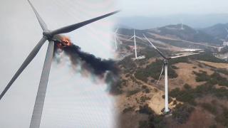 양산서 풍력발전기 화재…2시간 반 만에 완진[엥커]경남 양산의 풍력발전기에서 화재가 발생해 약 2시간 반만에 진화됐습니다.인명피해는 없었지만, 산불 확산 우려로 일부 인원이 대피하는 소동이 빚어졌습니다.하준 기자입니다.[기자]산 중턱 풍력발전기에서 검은 연기가 피어오릅니다