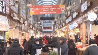 "소고기랑 국거리 샀죠"…설 앞둔 전통시장 '북새통'[앵커]설 명절이 일주일 앞으로 다가왔습니다.올해 차례상 비용은 전통시장이 대형마트보다 20% 넘게 저렴한 것으로 조사됐는데요.알뜰하게 명절을 준비하려는 시민들이 몰리면서 전통시장 골목에도 모처럼 활기가 돌았습니다.김도헌 기자가
